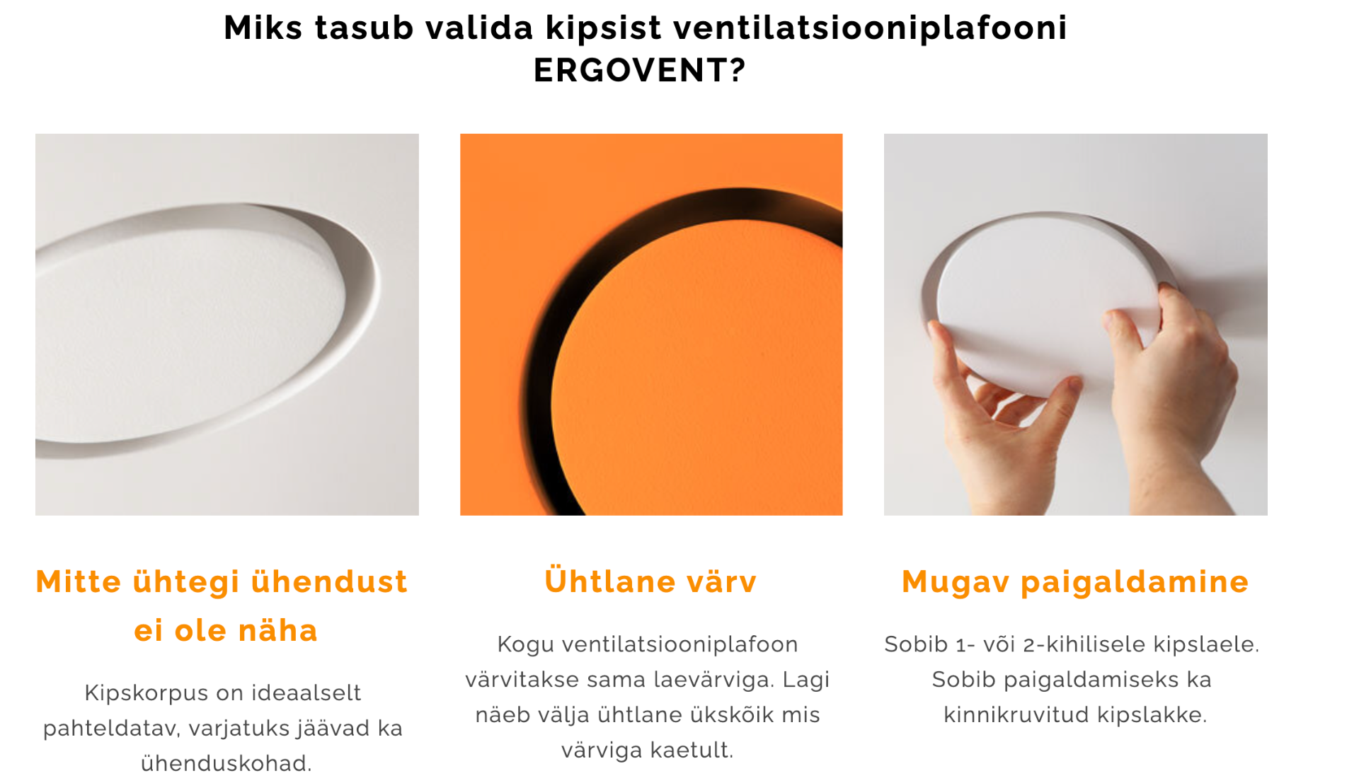 Kipsist ventilatsiooniplafoonid RONDO paigaldatakse kipslakke, pahteldatakse ja värvitakse sama laevärviga. Lakke jääb vaid esteetiline, rõngakujuline pragu õhuvoolule.